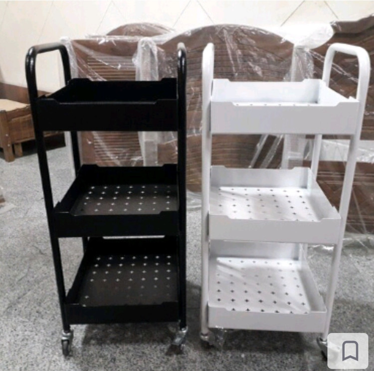 ترولی فلزی چرخدار در رنگ بندی مشکی و سفید