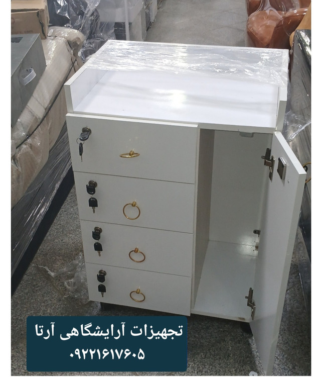 ترولی آرایشگاهی قفلدار ۴ کشو یک درب