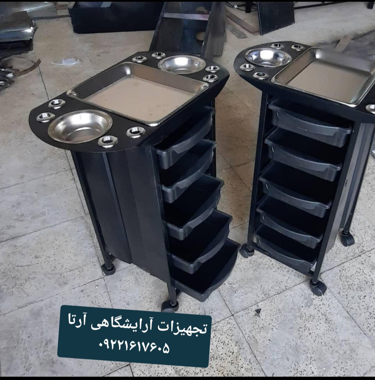 ترولی فلزی آرایشگاهی ۵ کشو سینی استیل در دو رنگ سفید و مشکی ارسال به سراسر کشور هزینه ارسال به عهده خریدار میباشد